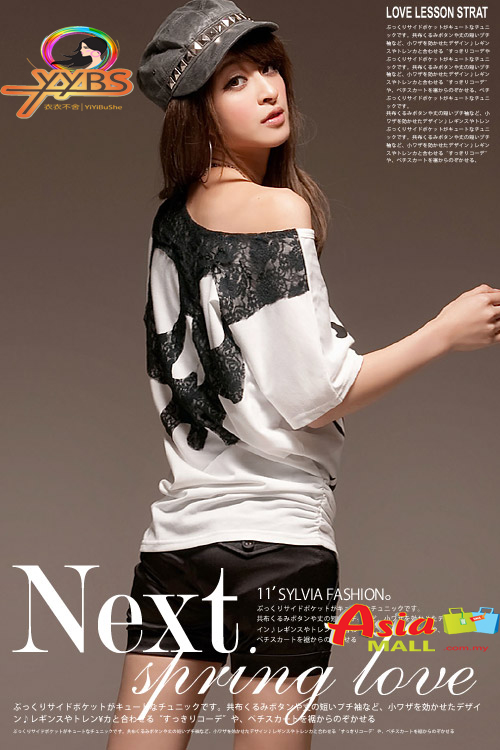 韓版單肩鑽雙色造型上衣